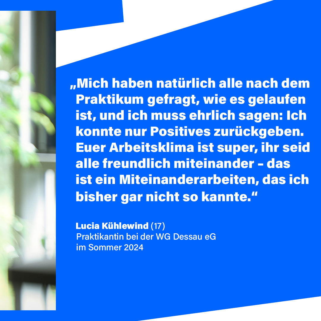 Hallo Lucia, was hat dich motiviert, dich bei der Wohnungsgenossenschaft auf eine Praktikumsstelle zu bewerben?