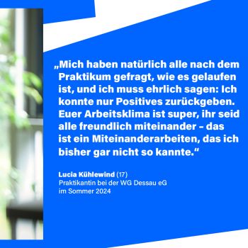 Hallo Lucia, was hat dich motiviert, dich bei der Wohnungsgenossenschaft auf eine Praktikumsstelle zu bewerben?